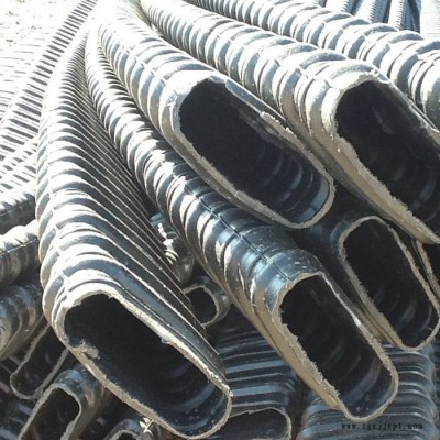 3塑料波紋管一般為黑色,內(nèi)外壁不允許有融體破裂、硬塊、嚴(yán)重氣泡等缺陷,為達(dá)到較小的摩阻系數(shù)和環(huán)剛度塑料波紋管應(yīng)是間隔圓環(huán)波形的管材。