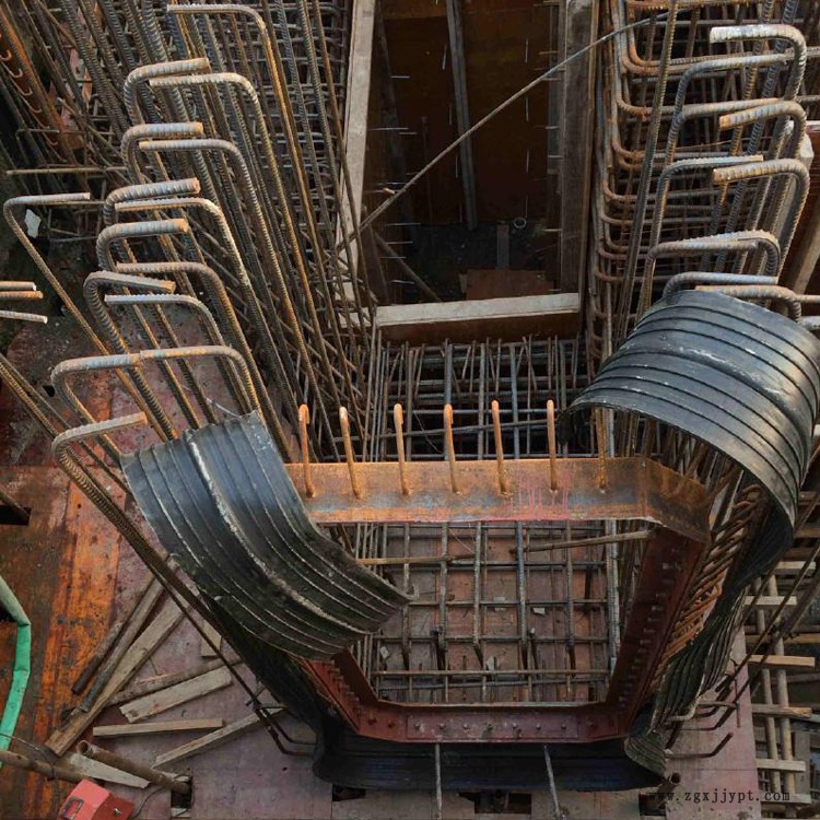 橡膠止水帶必需采取可靠的固定措施,綁扎鋼筋和支模時(shí)。防止在澆注混凝土?xí)r發(fā)生位移,保證止水帶在混凝土中的正確位置。