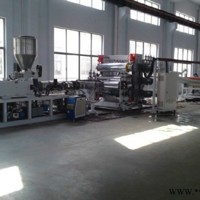 PP pe塑料擠出板材機組,由單螺桿塑料擠出機、自動真空上料機、