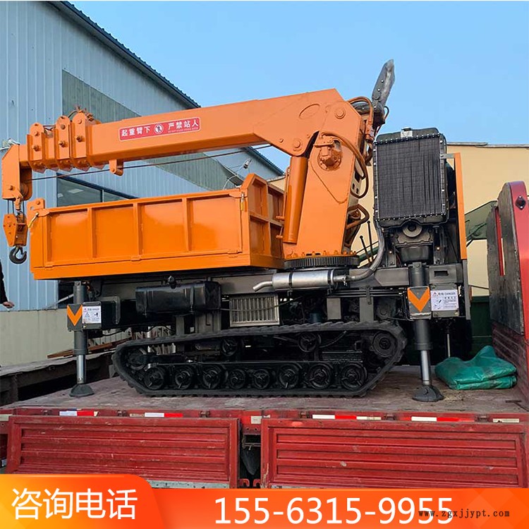 履帶隨車吊以橡膠履帶、輪系代替了傳統(tǒng)輪式行走,承載能力大、抓地力強(qiáng),噪音低,同時履帶式行走裝置增大了機(jī)器與地面的單位接地面積,不傷害農(nóng)田及柏油路面,具有良好的行駛及通過性能,降低了對農(nóng)田地面的損傷,軸端雙密封結(jié)構(gòu),保證潤滑油密封不外漏,并能防止泥水進(jìn)入輪腔。