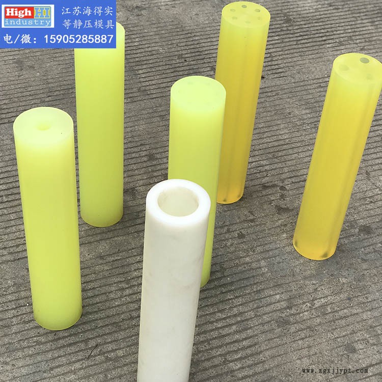 一、 應用范圍更廣。聚氨酯材料的硬度范圍廣,可根據(jù)不同的設(shè)備或壓制工藝,制作成不同硬度的等靜壓模具。比如,在壓制大尺寸工件時,用較大硬度的聚氨酯材料制作剛性大的模具,裝料時有很好的支撐力,模具不會變形;在壓制一些異形件,使用硬度低的聚氨酯軟模,壓制后易脫模,使用方便。這些特點是等靜壓橡膠模具所不能滿足的。