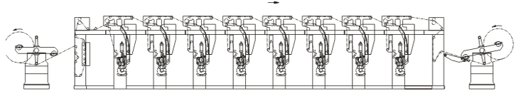 性能及特點(diǎn): 1、自動(dòng)套色系統(tǒng)各控制單元獨(dú)立配置微處理器,可迅速準(zhǔn)確的修正套色偏差。 2、主機(jī)變頻調(diào)速。 3、獨(dú)立放卷架,放卷張力采用自動(dòng)張力控制器和磁粉制動(dòng)器控制。 4、獨(dú)立收卷架,收卷采用力矩電機(jī)卷取,雙工位自動(dòng)翻轉(zhuǎn),預(yù)驅(qū)動(dòng)自動(dòng)裁切,可實(shí)現(xiàn)不停機(jī)換料。 5、封閉循環(huán)式烘箱及獨(dú)立加熱送風(fēng)系統(tǒng),自動(dòng)恒溫系統(tǒng)。 6、氣動(dòng)壓印系統(tǒng)(帶有背壓輥裝置)及氣動(dòng)刮墨系統(tǒng)。 7、隔膜式氣動(dòng)油墨自動(dòng)循環(huán)系統(tǒng)。 8、氣脹式收放卷軸。 9、印刷線速度及計(jì)米顯示。 10、無軸上版裝置(可選配有軸上版裝置)。 11、可選配靜止畫面。 12、可選配七電機(jī)閉環(huán)張力控制系統(tǒng)。 | ||||||||||||||||||||||||||||||||||||||||||||||||||||||||||||||||||||||||||||||||||||||||||||||||||||||||||||||||||||