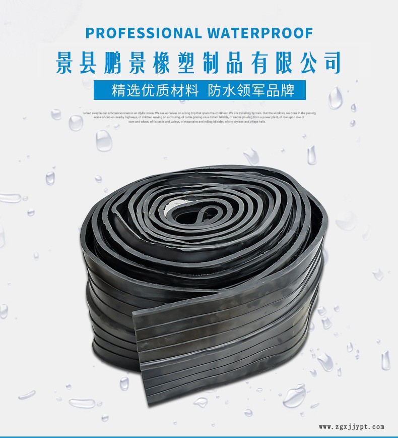 止水帶可分為:中埋式橡膠止水帶和背貼式橡膠止水帶(外貼式橡膠止水帶)、鋼邊橡膠止水帶、遇水膨脹橡膠止水帶、平板式止水帶。