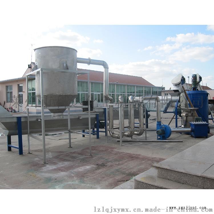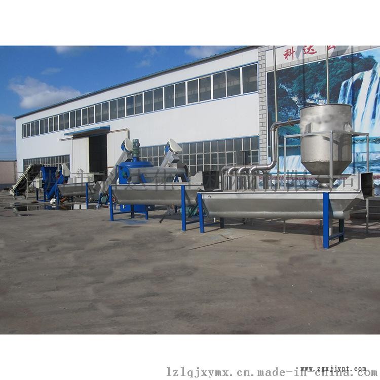 PET瓶片清洗設(shè)備_PET熱(冷)清洗流水線__PET(聚酯)瓶清洗回收生產(chǎn)線又稱PET塑料瓶破碎清洗回收生產(chǎn)線,聚酯瓶回收流水線,寶特瓶粉碎清洗干燥回收生產(chǎn)線,適用于廢舊PET瓶(如礦泉水、可樂等各類塑料瓶)的去標(biāo),破碎,清洗,干燥,包裝的整套生產(chǎn)設(shè)備,裝廢舊PET塑料瓶加工成聚酯瓶片的整套處理方案,將廢舊PET塑料瓶加工成可再生利用的高品質(zhì)PET瓶片。本設(shè)備生產(chǎn)出高質(zhì)量的PET瓶片,可用于生產(chǎn)PET再生滌綸等長纖產(chǎn)品和其他高質(zhì)量PET相關(guān)產(chǎn)品。新型pet清洗設(shè)備主要的生產(chǎn)流程是:送料機_脫標(biāo)機_分選平臺_送料機_破碎機_螺旋送料清洗機_沉浮分選清洗機_高溫鍋爐_抽料機_摩擦洗料機_漂洗機1_漂洗機2_脫水機_裝袋,整套設(shè)備自動化程度高,耗電量低,產(chǎn)量高(設(shè)備產(chǎn)量為200KG—1000KG/小時),清洗也的料干凈,化纖廠可直接抽絲再加工,無需清洗。同時根據(jù)用戶原料種類和對瓶片清洗質(zhì)量要求的不同可進行選配不同的組合,以滿足不同用戶的需求。目前可選配的單元機主要有:開包機、預(yù)清洗機、商標(biāo)紙剝離機、人工分選皮帶輸送機、破碎機、熱水清洗機、磨擦清洗機、漂洗機、脫水機、儲料倉、熱風(fēng)烘干機、螺桿送料機、皮帶輸送機等,分色機、PVC分選機等該生產(chǎn)線外觀精美、能耗低、產(chǎn)量高,實用可靠。全新的漂洗裝置可以隨破隨洗,大大提高了生產(chǎn)效率,且洗料干凈,達到一級凈片要求。
