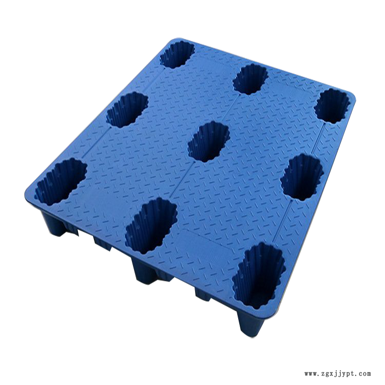 泰安塑料托盤尺寸之九腳塑料托盤九腳塑料托盤屬于輕型塑料托盤,可內(nèi)置鋼管,四向進(jìn)叉,可配合叉車、地牛使用。九腳塑料托盤尺寸有1100*1100*140mm,1200*800*140mm,1200*1000*140mm,1200*1000*150mm等。相比川字、田字塑料托盤,九腳塑料托盤價(jià)格比較便宜,適合體積大重量輕的貨物儲(chǔ)存、周轉(zhuǎn),一般都作為倉(cāng)庫(kù)輕型貨物墊倉(cāng)板、叉車周轉(zhuǎn)較輕貨物使用,不易用于上貨架或者較重貨物的使用。