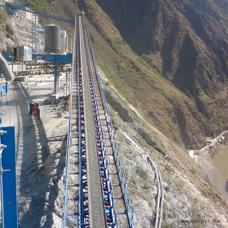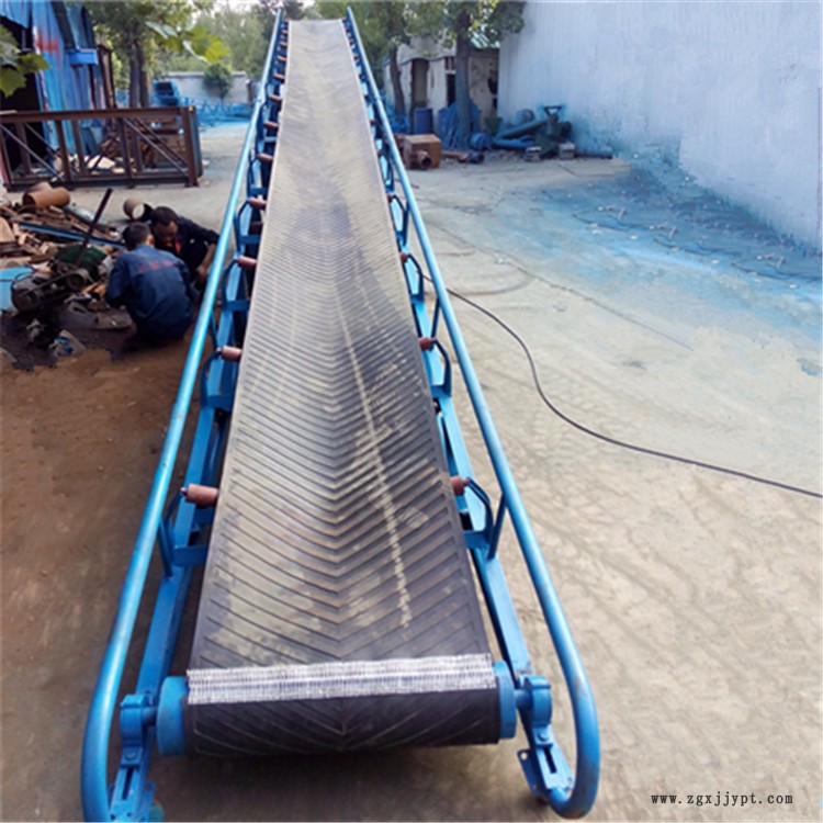 DJ型大傾角皮帶輸送機為一般用途的散狀物料連續(xù)輸送設(shè)備,采用的是具有波狀擋邊和橫隔板的輸送帶,因此特別適用于大傾角輸送。