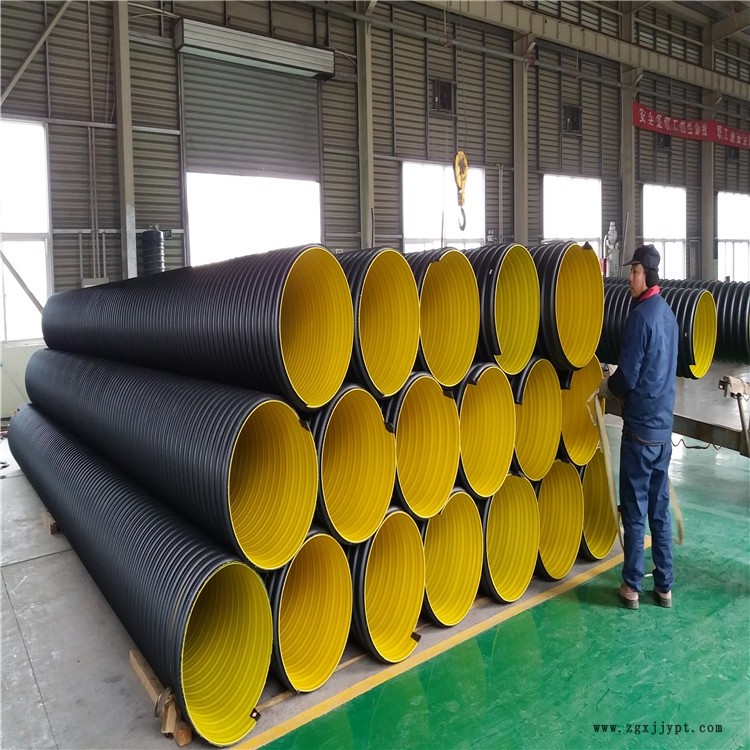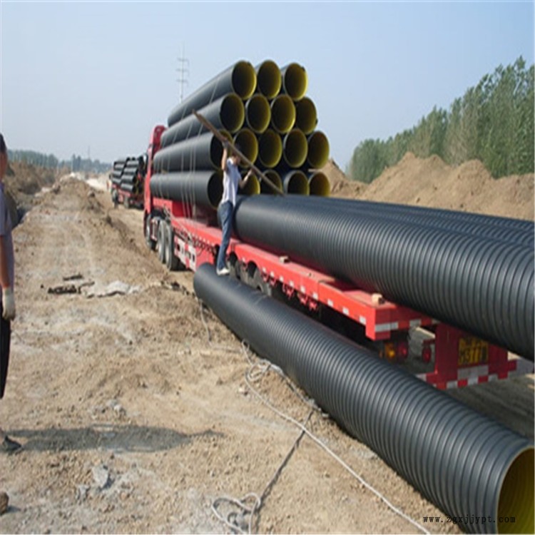 這種鋼帶增強型聚乙烯螺旋波紋管,簡稱鋼帶波紋管,它是由HDPE高密度聚乙烯、鋼帶、粘結樹脂在機器上一次成型,成品管道型號300mm~2600mm,長度6米,9米定尺,顏色:內黃外黑,或者內外純黑,適用于城市污水排放、遠距離低壓輸水及農田水利灌溉等工程,該產品可用于地面敷設和地下埋設較小深0.5m,較大埋深11.87m。