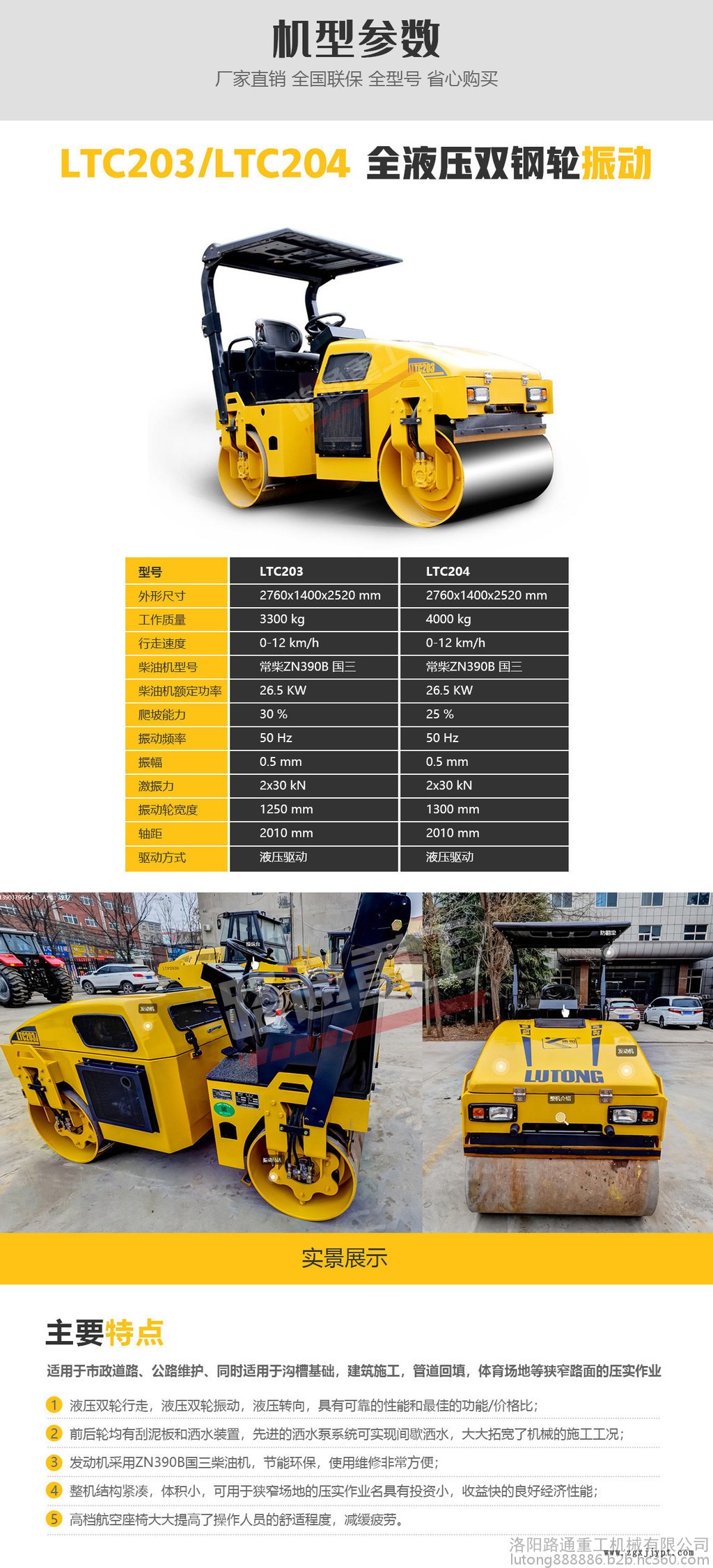 *液壓雙輪行走,液壓雙輪振動(dòng),液壓轉(zhuǎn)向,具有可靠的性能和很好的功能/價(jià)格比;*LTC203P 液壓前后輪驅(qū)動(dòng)行走,液壓前輪振動(dòng);