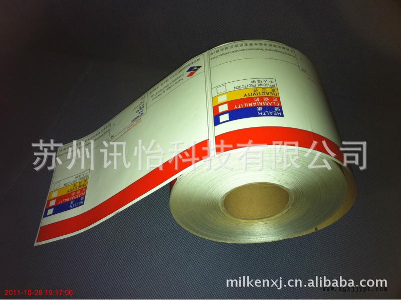 我公司定制各種特殊規(guī)格型號FASSON全線不干膠標簽:空白可打印標簽、電子電器類標簽、耐高溫標簽(80℃——600℃)、透明標簽、防串貨標簽、防水標簽、油品標簽、耐低溫強粘血站標簽、醫(yī)藥生物標簽、資產管理類標簽、消費食品類標簽、線纜類標簽、物流標簽、航空行李專用標簽、外包裝箱標簽、PET面輪胎膠專用標簽、圖書管理標簽、化妝品標簽、化工類標簽、珠寶打價簽、超市標簽、商場熱敏標簽、AVERY軍事品標簽、可重復粘貼標簽、防靜電標簽、戶外空調外機標簽、冰箱雙層底紙標簽、服裝吊牌、防偽系列標簽(800電碼防偽標簽、電子監(jiān)管碼防偽標簽、揭開留字VOID標簽、鐳射防偽標簽、易碎防偽標簽、遇水變紅色防偽標簽)、涂料銀PET化SUNTECKSYSTEM訊怡包裝材料科技公司是一家集研發(fā)、生產、加工、復合銷售標簽,膠粘制品,精密電子妝品瓶貼等。