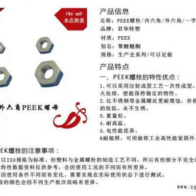 | 型號 | M6外六角PEEK螺母 |