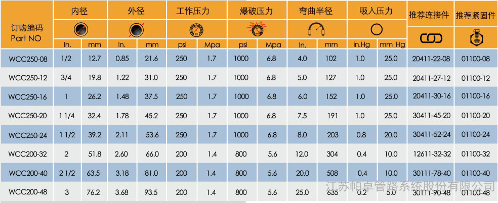 同時,在其他需求不導(dǎo)電的行業(yè)應(yīng)用中同樣也可以采用WCC作為輸送介質(zhì)軟管使用。