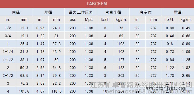 | 型號(hào) | FABCHEM 1/2”橡膠管 Continental化學(xué)品輸送管 |