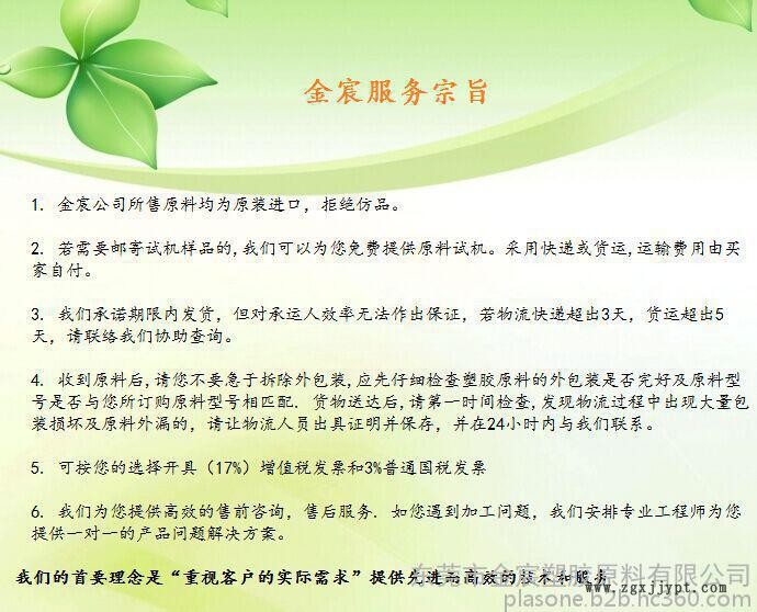 我公司可開具17%增值稅發(fā)票,是一般納稅人企業(yè)。并提供產(chǎn)品的PDF物性表及加工參數(shù)、UL黃卡、材質(zhì)證明及物質(zhì)安全資料表(MSDS)、出廠檢驗(yàn)報(bào)告COA、歐盟ROHS、SGS報(bào)告、FDA食品醫(yī)療、ASTM,ISO性能測(cè)試報(bào)告、SONY環(huán)保認(rèn)證等信息,由于數(shù)據(jù)庫(kù)龐大,未能提供下載,更多資料請(qǐng)電話聯(lián)系我們。