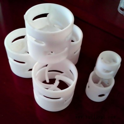 塑料鮑爾環(huán)(Pallring)是在拉西環(huán)的壁上開一兩層窗口而成,上下兩層窗孔錯開排列。開孔切開的窗葉片一邊與環(huán)壁母體相連,另一邊彎向環(huán)內,在環(huán)中心幾乎對接,上下兩層葉片的彎曲方向相反。由于開孔,溝通了環(huán)內外表面和空間,使得液體和氣體均勻分布,因此,阻力、通量和傳質效率均比拉西環(huán)顯著改善。