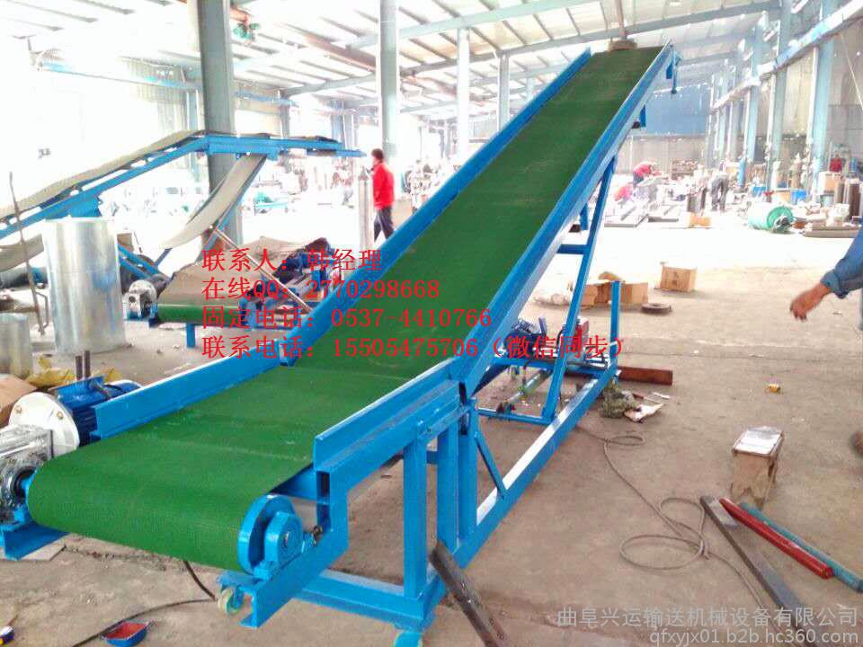 3、移動(dòng)式皮帶輸送機(jī)也可被用了成品袋裝貨物的輸送,如已經(jīng)包裝好的成袋的糧食等在裝車的時(shí)候使用,提高了裝車效率節(jié)省了人力資源。