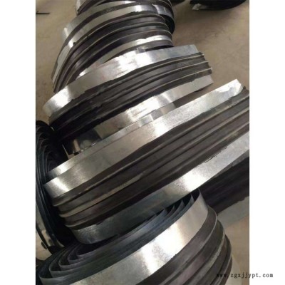 三、扁鋼用一定間距的螺栓固定以保證止水帶中間空心圓環(huán)與變形縫中心重合,同時橡膠止水帶兩端應(yīng)微微翹起與中間空心圓環(huán)成15°~30°水平夾角,便于澆筑混凝土?xí)r排出內(nèi)部空氣