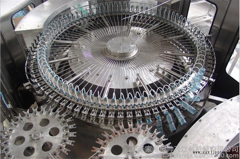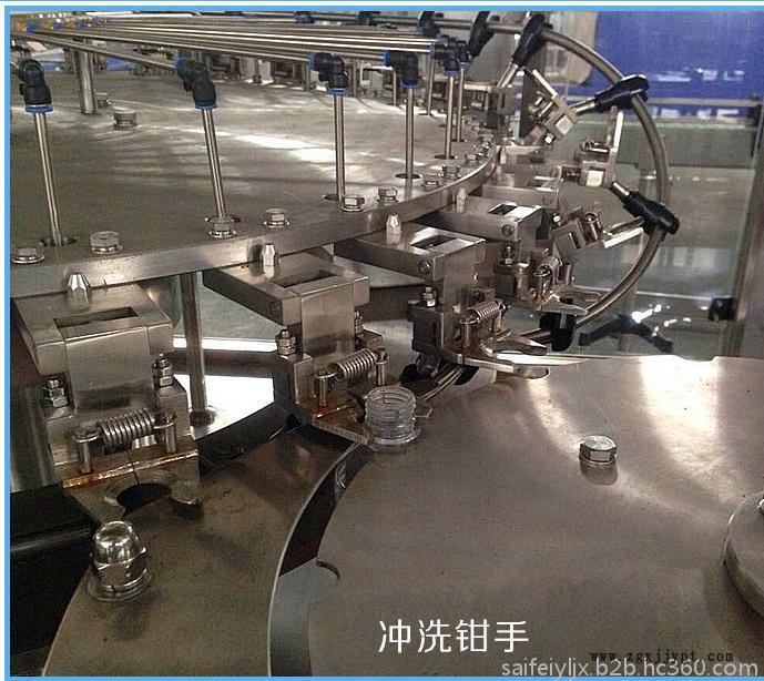 2、采用風(fēng)送進(jìn)瓶、夾瓶口、沖洗、卡瓶口灌裝、封蓋、不受瓶子高矮限制,只要瓶口、瓶蓋相同隨意更換瓶形,更換一下拔輪板即可。油尼龍齒輪傳動(dòng),噪聲小,整機(jī)運(yùn)轉(zhuǎn)平穩(wěn)。