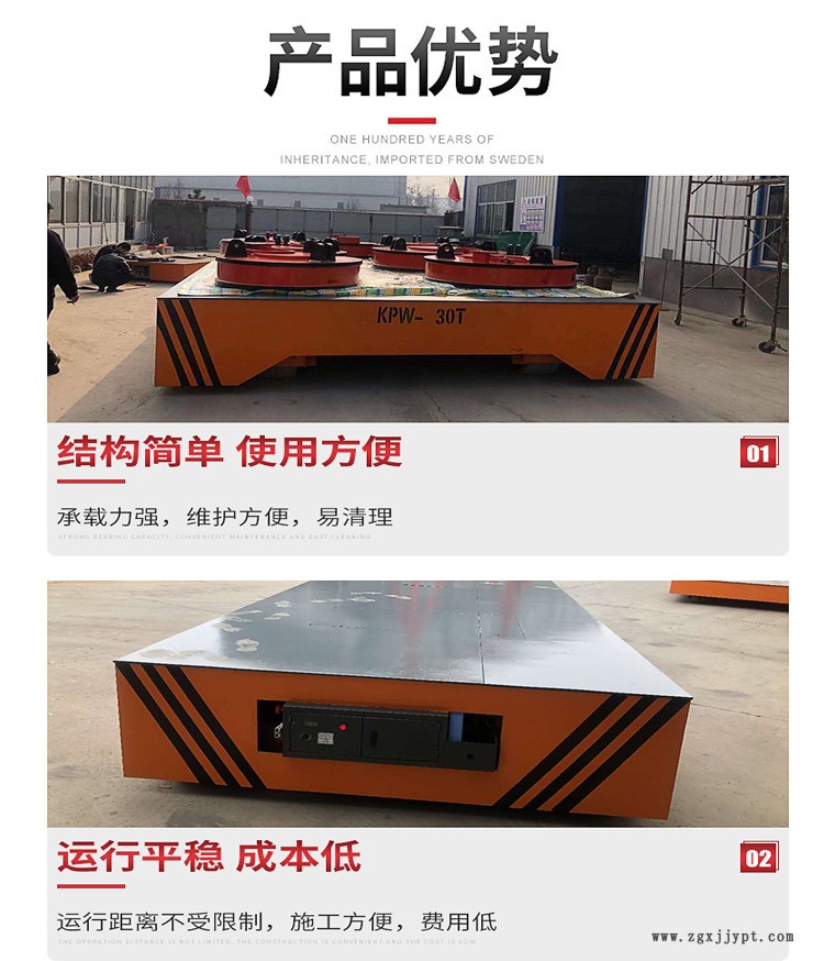 | 電動(dòng)平車:又稱電動(dòng)平板車、電平車、臺(tái)車、過(guò)跨車、地爬車等,是一種廠內(nèi)有軌電動(dòng)運(yùn)輸車輛,它是一種軌道型運(yùn)輸車輛,需要在地面上鋪設(shè)軌道,軌道一般為工字型面接觸道軌;其次它是電驅(qū)動(dòng)車輛,在電機(jī)減速機(jī)驅(qū)動(dòng)下自動(dòng)運(yùn)行,再次它是一種平板車,臺(tái)面平整無(wú)廂蓋,特殊情況下也可以是非平面但無(wú)廂蓋,車體無(wú)方向盤(pán)只有前進(jìn)后退方向(即使轉(zhuǎn)彎也城靠軌道轉(zhuǎn)彎)。此種車輛具有結(jié)構(gòu)簡(jiǎn)單、使用方便、承載能力大、不怕臟不怕砸、維護(hù)容易、使用壽命長(zhǎng)等特點(diǎn),因其方便、壯實(shí)、經(jīng)濟(jì)、實(shí)用、易清理等諸多優(yōu)點(diǎn),成為企業(yè)廠房?jī)?nèi)部及廠房與廠房之間短距離定點(diǎn)頻繁運(yùn)載重物運(yùn)輸工具。 KPX系列是蓄電池電動(dòng)平車:以蓄電池供電。蓄電池給直流牽引電機(jī)提供電力,直流電機(jī)拖動(dòng)平車運(yùn)行。直流電機(jī)與交流電機(jī)相比有不易燒損,起動(dòng)力矩大,過(guò)載能力強(qiáng)的優(yōu)點(diǎn)。運(yùn)行距離不受限制。它比KPJ、KPD兩種系列平車具有更大的安全性能和機(jī)動(dòng)性靈活性,運(yùn)行距離不受限制,對(duì)軌道無(wú)絕緣要求,故施工方便費(fèi)用低廉。 |