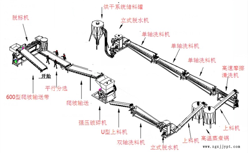 塑料清洗線主要處理日常生活中所廢舊的礦泉水瓶、飲料瓶、可樂瓶等塑料瓶的再生回收清洗。其回收清洗生產(chǎn)線可分為毛片簡易生產(chǎn)線、冷水鋪清洗生產(chǎn)線、高溫熱水凈片生產(chǎn)線。然根據(jù)不同的處理工藝可以做出短纖料、長絲料和三維瓶片料等。
