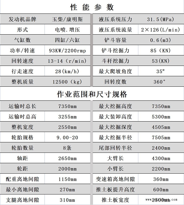| 挖掘?qū)挾?/th> | 7505mm |