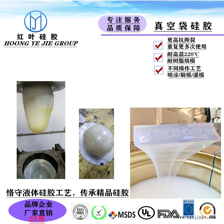 深圳紅葉HY-E640 硅膠氣囊袋原材料屬于RTV-2模具硅膠材料,硫化前具有操作時(shí)間長,流動(dòng)性好,粘度低的特點(diǎn),呈現(xiàn)流動(dòng)性液體狀,分裝于AB兩組分,使用時(shí)將AB按照重量比1:1混合攪拌均勻,經(jīng)過常溫或者加溫硫化成型,成型之后的硅膠氣囊強(qiáng)度較高,縮水率可達(dá)0.1%硬度可達(dá)40±2度,硅膠氣囊袋產(chǎn)品可承受高氣壓值帶來的外力作用,且抗撕裂性能較好,不用擔(dān)心氣壓值過大導(dǎo)致產(chǎn)品破裂的問題,人為手力很難撕裂開,產(chǎn)品使用的壽命長。