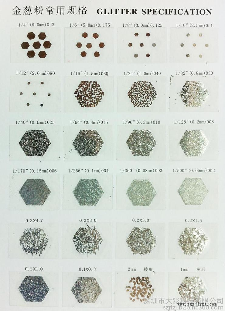 閃粉常用規(guī)格: