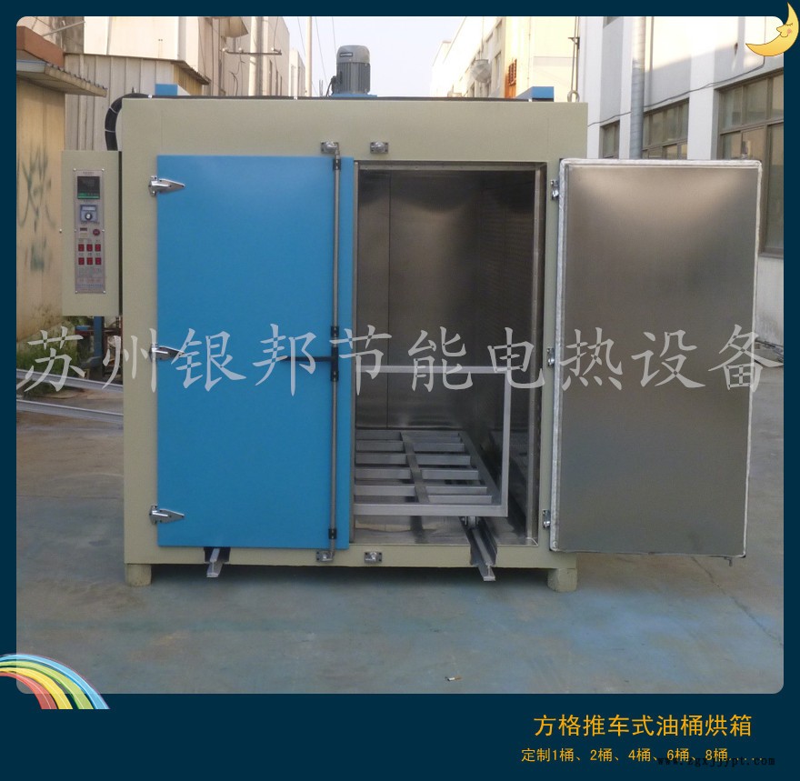 天氣較冷的的時(shí)候很多化工、化學(xué)、工業(yè)原料容易固化或凝固,這**需要用到新型的熱風(fēng)循環(huán)油桶專用烘箱進(jìn)行加熱、預(yù)熱、溶解。銀邦油桶烘箱具體升溫速率快,預(yù)熱效果高,控溫均勻,恒溫定制,容量大(可定制桶數(shù))等特點(diǎn)。油桶烘箱可根據(jù)客戶所需預(yù)熱原料桶的個(gè)數(shù)來定制尺寸,并配適合的物料架。常用的物料架樣式有:軌道臺(tái)車式、托盤式、鋼底板式、上下隔板式等等。下面以2桶裝油桶烘箱為例給大家介紹一下銀邦品牌油桶烘箱:
