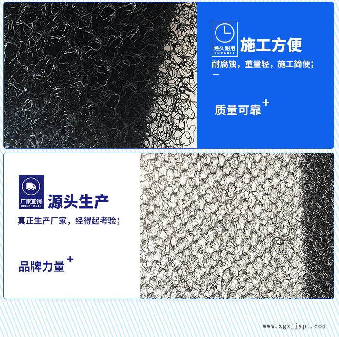 滲排水片材(土工席墊) 是一種以亂絲熔融鋪網(wǎng)而成的新型土工合成材料,它耐壓高、開孔密度大,具有集水、水平排水功能。 產(chǎn)品特點 1、土工席墊與無紡?fù)凉げ紡?fù)合后,能在掩埋的封閉覆蓋層之下,將匯集滲透過土壤覆蓋層的雨水或堆場本身排放的污水,利用其排水功能,按照工程要求從土工席墊夾層中有序排放,而不會形成淤堵。因此可以避免因土壤覆蓋層吸水飽和而產(chǎn)生可能的滑動問題。 2、土工席墊既能排水,同時也可排放土壤(特別是垃圾廢棄物)中因發(fā)酵產(chǎn)生的沼氣,在垃圾填埋場中應(yīng)用尤其適用。 3、土工席墊與HDPE結(jié)合應(yīng)用時,同時能起到很好地保護HDPE膜不被穿刺的作用。 4、土工席墊規(guī)格及性能土工席墊目前寬度為1m,厚度為6mm-100mm,抗壓強度250-1000kpa。并可根據(jù)工程要求訂做其它規(guī)格和性能的產(chǎn)品。