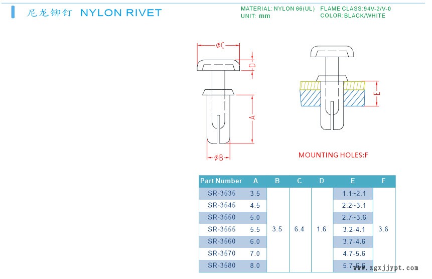 | 表面處理 : | 94V-2 | 材料等級 : | PA66 |