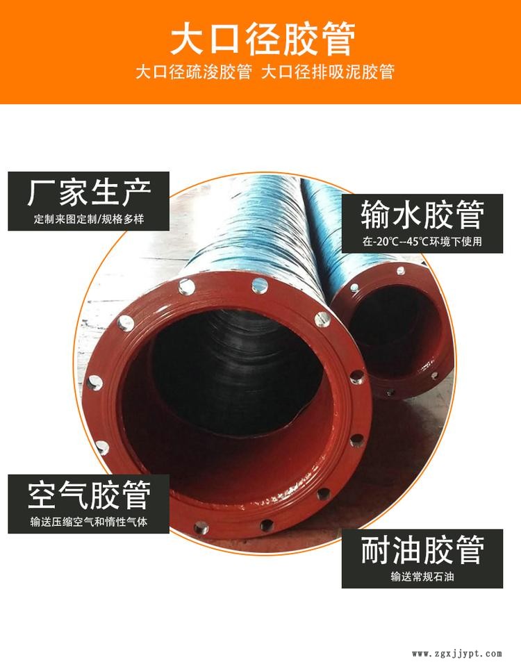大口徑膠管用于吸排水、油、泥漿及其他流體的運送。