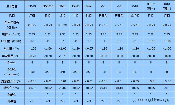 耐酸群青:RA-40、AR、HWR