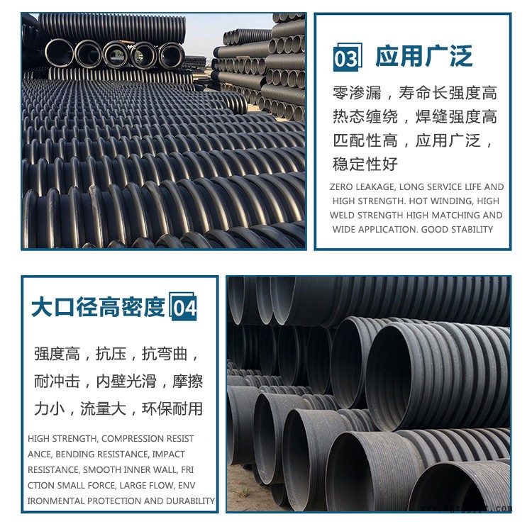 公司主要生產(chǎn):①聚丙烯靜音排水管材及管件、②聚丙烯(PP)降噪特殊單立管系統(tǒng)管材及管件、③HDPE溝槽式壓環(huán)柔性連接超靜音排水管道系統(tǒng)、④HDPE聚乙烯雙壁波紋管、⑤大口徑鋼帶增強聚乙烯(PE)螺旋波紋管等產(chǎn)品,廣泛應(yīng)用于市政、生活小區(qū)、工礦企業(yè)等建筑領(lǐng)域的排水排污。