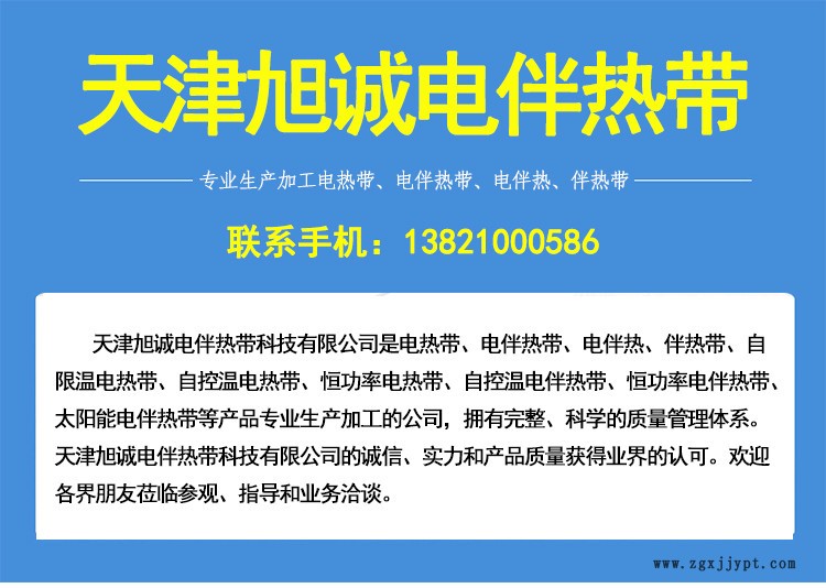 公司:天津旭誠(chéng)電伴熱帶科技有限公司 地址:中國(guó)天津津南區(qū)雙港工業(yè)區(qū)麗港園12號(hào)2-305