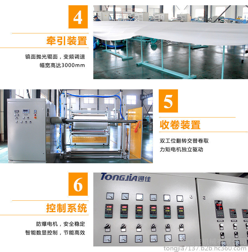 4. 牽引裝置:鏡面拋光輥面,變頻調(diào)速,幅寬高達(dá)3000mm