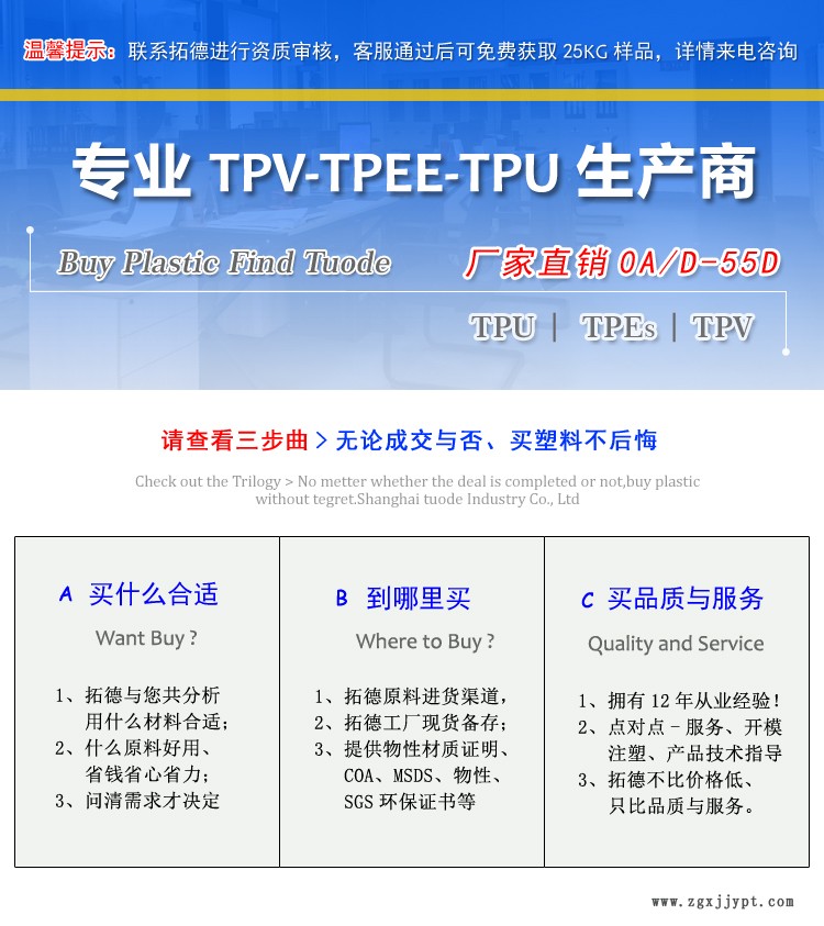 上海拓德實(shí)業(yè)有限公司是一家十多年的TPV供應(yīng)商,專業(yè)從事研發(fā),生產(chǎn),銷售及服務(wù);