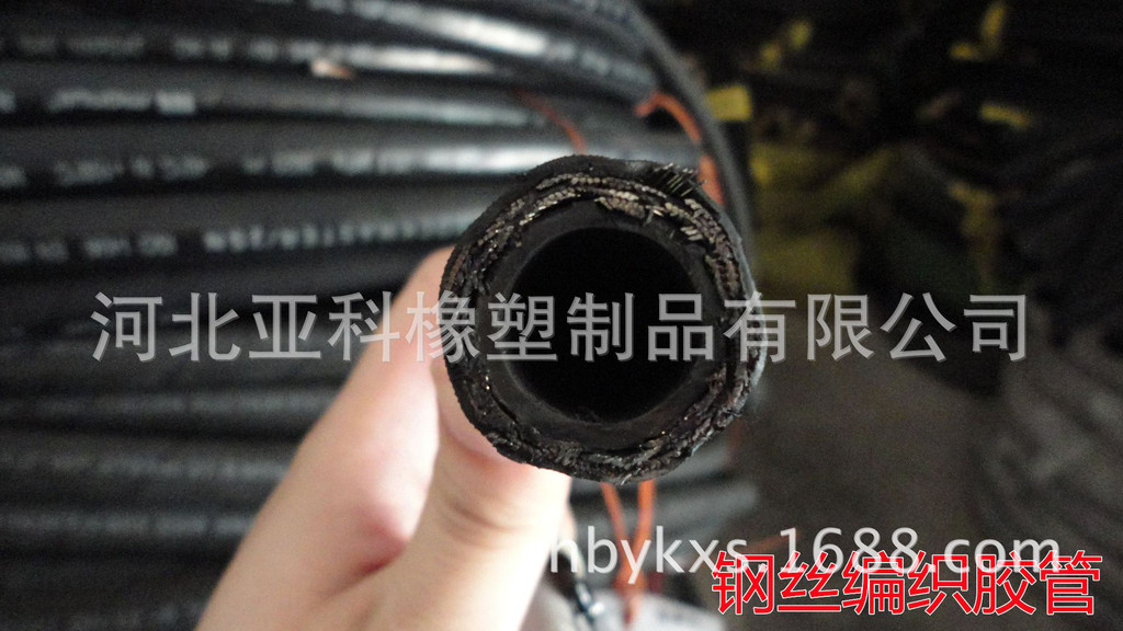 高壓鋼絲纏繞膠管主要由耐液體的內(nèi)膠層、中膠層、2或4或6層鋼絲纏繞增強(qiáng)層、外膠層組成,內(nèi)膠層具有使輸送介質(zhì)承受壓力,保護(hù)鋼絲不受侵蝕的作用,外膠層保護(hù)鋼絲不受損傷,鋼絲(φ0.3--2.0增強(qiáng)鋼絲)層是骨架材料起增強(qiáng)作用。