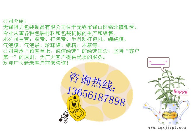 【提示】量大可按客戶的規(guī)格和要求去定做封箱膠帶、印字膠帶、文具膠帶、雙面膠帶。保證客戶的粘度、長度和寬度。保證客戶質(zhì)量。