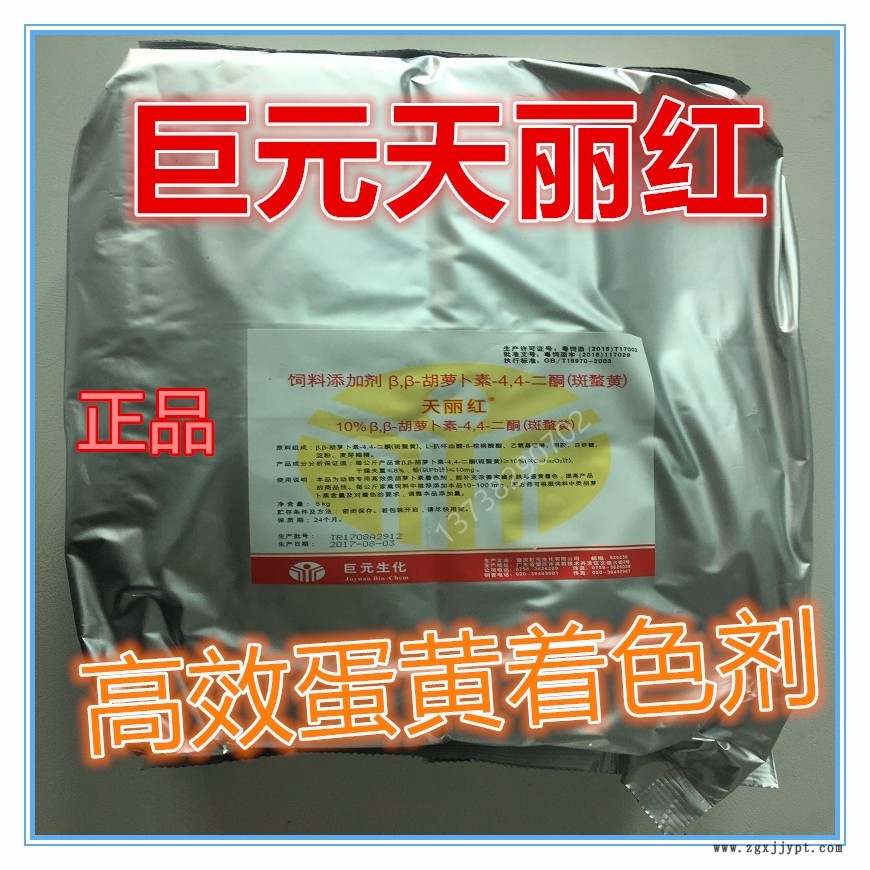 1、可以改變禽類的皮膚、脂肪等,屬于合成色素,有效成分為角黃素,主要用于蛋黃、食用家禽、鮭魚和甲殼類動(dòng)物的著色,廣泛用于飼料業(yè),適于添加到各種配合料、預(yù)混料、粉料、顆粒劑和膨化料中,增加皮膚、腳、酮體和蛋的顏色及亮度。