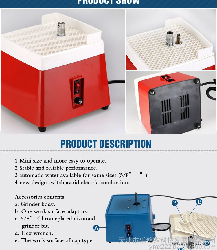 曼德MD901+美標插頭110v小型迷你家用帶擋板電動工具磨邊機研磨玻璃紅色電動磨臺