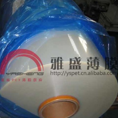 深圳市雅盛PET膜材料有限公司以聚脂PET薄膜PET膜PETPET膠片PET薄膜PET麥拉PET塑料薄膜聚脂薄膜,為主,厚度有9-400um,寬度35mm-2000mm.顔色:透明PET、半透明PET、霧壯PET、啞白PET、光白PET、磁白PET、米白PET、米黃色半透明PET、奶白色半透明PET、啞黑PET、光黑PET、PET透明膜、PET霧狀膜、PET耐高溫膜.