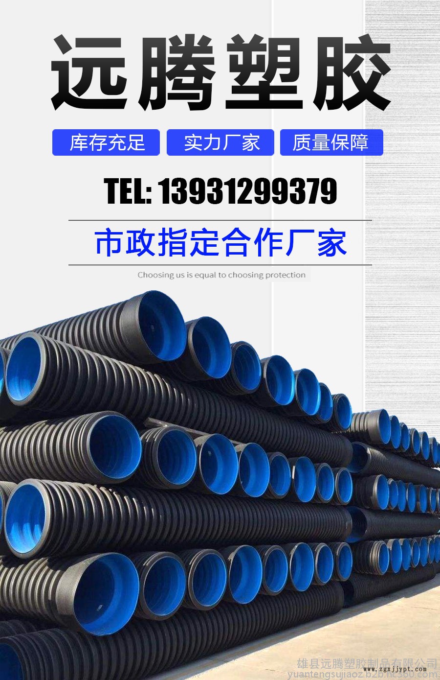 雄縣遠(yuǎn)騰塑膠制品有限公司生產(chǎn)上百個(gè)品種規(guī)格的塑料管材管件,其中生產(chǎn)的給水管、電力管、PE頂管為主要產(chǎn)品系列。給水系列有:UPVC、PE、PP-R給水管件管材。高低壓電纜電線護(hù)套系列有:UPVC、CPVC、PE管材,HDPE、PVC大口徑雙壁波紋管及管件。地下通訊用管系列有:PE頂管、HDPE雙壁波紋管、多孔梅花管、硅芯管、多色PE子管、PVC柵格管等。排水系列有:UPVC建筑排水用實(shí)壁管、消音管,PVC大口徑排水管。HDPE單壁波紋碳素復(fù)合管。