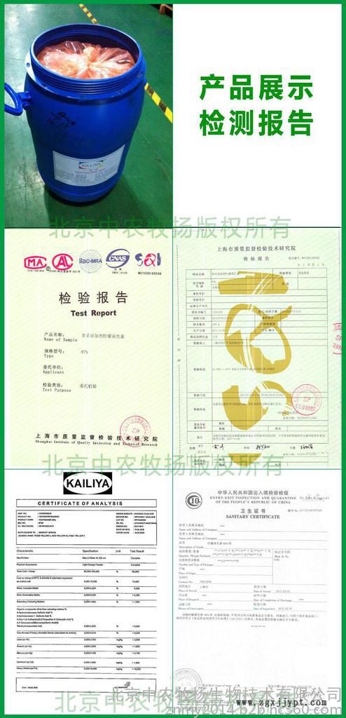 純含量:88% 穩(wěn)定性:對(duì)光、熱、酸、鹼、防腐劑、硫磺、二氧化物都具有穩(wěn)定性 水溶解性:攝氏20℃每公斤水溶解150克 包裝:25kg塑料桶裝 特點(diǎn): 1色素具有優(yōu)良的穩(wěn)定性 2水溶解性強(qiáng),生產(chǎn)上容易調(diào)??刂飘a(chǎn)品的色澤 3使用量低,卻能大幅改善您的產(chǎn)品外觀,以提高其商業(yè)價(jià)值 4符合世界衛(wèi)生組織,美國(guó)、日本、歐洲食品及藥品管理的標(biāo)準(zhǔn),廣泛適用于食品工業(yè)產(chǎn)品用量:50-90ppm均勻地加入于生產(chǎn)中的飼料。