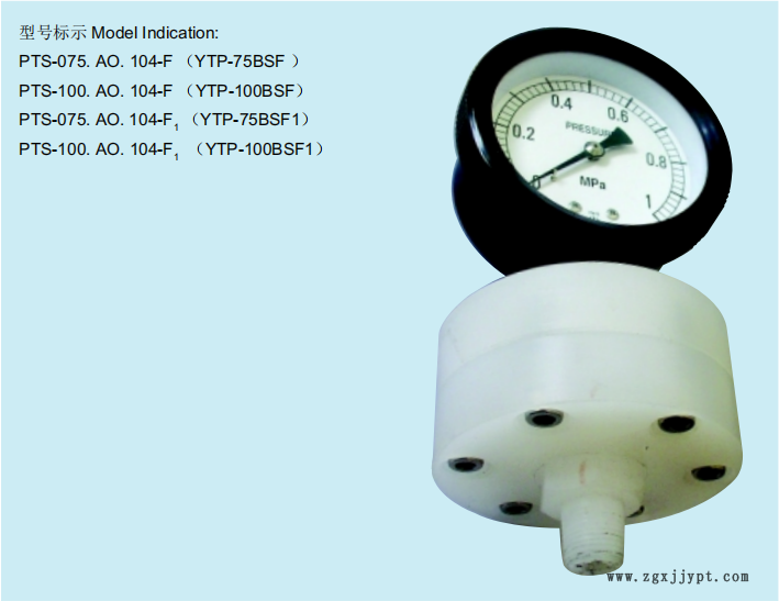 | 型號 | Ф 75、Ф 100 全塑隔膜壓力表 |