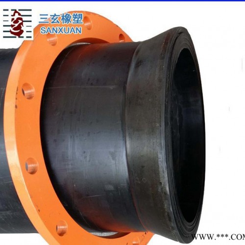 4、三玄成品特塑輸泥、沙管兩頭帶活動金屬法蘭;整條成品管無任何焊縫,管與管通過活動法蘭直接用螺栓連接;管口內(nèi)襯鋼圈,可以確保管口長期安裝拆卸的使用過程中不變形,不斷裂,不滴漏,確保輸送工程的高效率。
