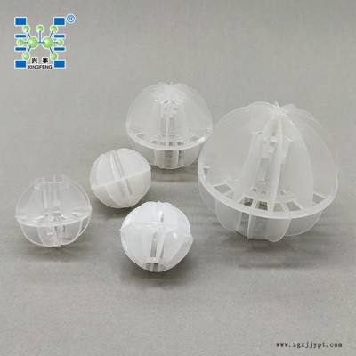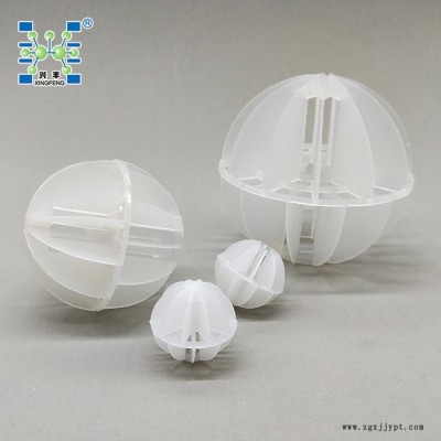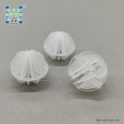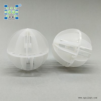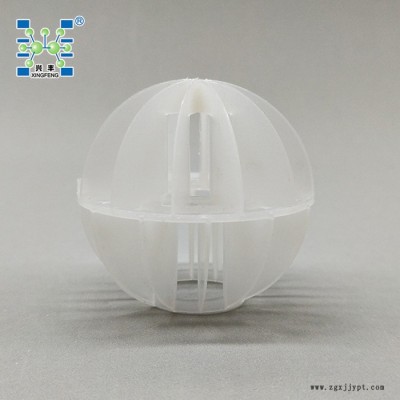 聚丙烯多面空心球是由二個(gè)半球合成一個(gè)球形,每個(gè)半球由若干個(gè)半扇形葉片組成,由兩個(gè)半球的扇形葉片又相互錯(cuò)開。這種填料的優(yōu)點(diǎn)是比表面積較大,因此被較多地用于電廠水處理脫CO2設(shè)備中。