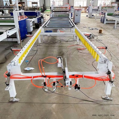 貼面機(jī)可為板材雙面涂膠貼面,一次過(guò)板兩面成型,省時(shí)省力。全機(jī)數(shù)控管理,氣缸升降,兩次板材除塵,多道舒展輥壓合(包括兩道加熱輥),pvc預(yù)先加熱,適合各種厚度的pvc貼合作
