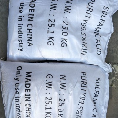 氨基磺酸的分子式為NH2SO3H。市售商品為白色粉末,在常溫下,只要保持干燥不與水接觸,固體的氨基磺酸不吸濕,比較穩(wěn)定。 氨基磺酸的水溶液具有與鹽酸、硫酸等同等的強(qiáng)酸性,故別名又叫固體硫酸,它具有不揮發(fā)、無(wú)臭味和對(duì)人體毒性極小的特點(diǎn)