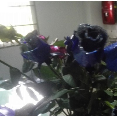 將已經(jīng)染色的藍(lán)色玫瑰的花頭用藍(lán)色的染料上色后,用手撒上寶藍(lán)色的閃粉**可以了。