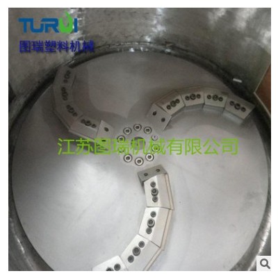 3、為了對(duì)密實(shí)機(jī)進(jìn)行控制,我們也做了自己的設(shè)計(jì),物料在鍋體內(nèi)被剪切,旋轉(zhuǎn)和摩擦,溫度會(huì)不斷升高,進(jìn)而收縮成團(tuán),進(jìn)入螺桿時(shí)已經(jīng)是半塑化狀態(tài),在螺桿里需要的熱能就會(huì)減少,加熱的時(shí)間會(huì)變短,進(jìn)的料多了,出的料快了,產(chǎn)量自然變高(進(jìn)的料多了,出料不及時(shí),螺桿會(huì)被卡死,這不行。進(jìn)的料少了,產(chǎn)量沒(méi)有,也不行)。在物料進(jìn)入螺桿時(shí)的溫度也很重要,溫度越高,產(chǎn)量自然越高,但太高的話,物料在鍋體里又會(huì)粘結(jié)成塊,俗話說(shuō)是糊鍋了。一旦物料結(jié)成一整塊,那也是進(jìn)不了螺桿的,就需要停機(jī)進(jìn)行清理了。所以控制密實(shí)機(jī)鍋體內(nèi)物料的溫度就是件重要而且也是件挺復(fù)雜的事情了。這也是我們和其他同行比所占有的優(yōu)勢(shì)。