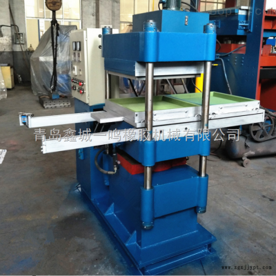 本機(jī)是生產(chǎn)橡膠地磚的硫化機(jī),每層配置兩套模具,輪流硫化,可以有效提高生產(chǎn)效率。同時(shí)配置手動(dòng)推拉模裝置,操作更加方便。